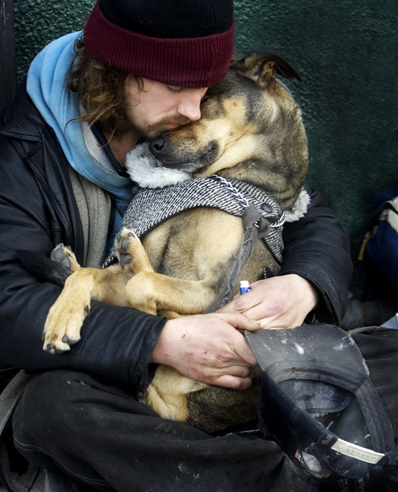 A perfect panoptical photograph, this endearing epitome of friendship embraces life & love in its wake. This still frame effuses warmth. You can literally feel the quiver of the dog’s nostrils in the Canadian chill, the plight of the homeless man, and the equanimity with which both have accepted their predicaments. A picture indeed speaks a thousand words!